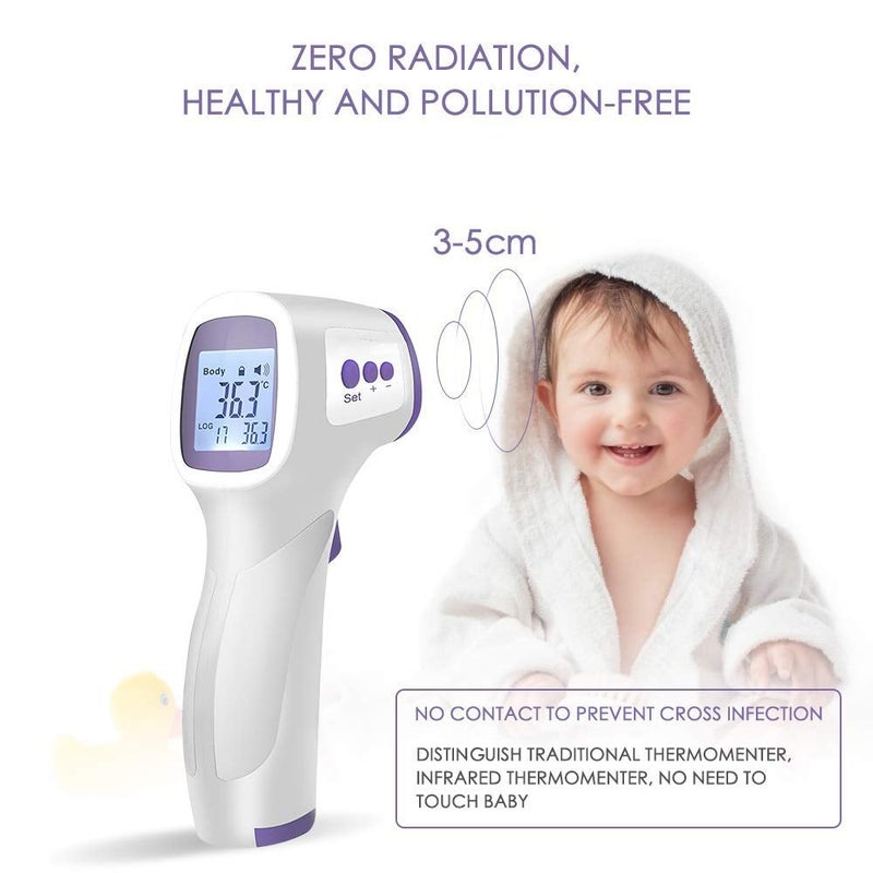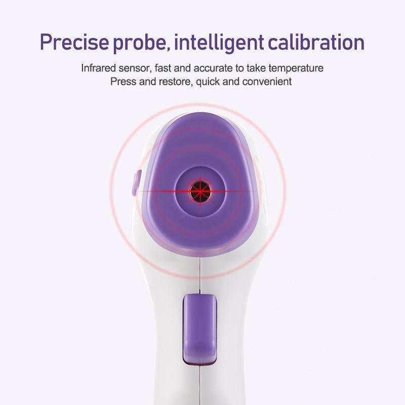 Das tragbare, berührungslose Infrarot-Körperthermometer für den Heim- oder Arbeitsplatz misst die Körpertemperatur durch Filterung der Umgebungstemperatur. Für eine höhere Genauigkeit wird empfohlen, das Thermometer vor der Verwendung 15 bis 20 Minuten lang in der Betriebsumgebung zu kalibrieren.