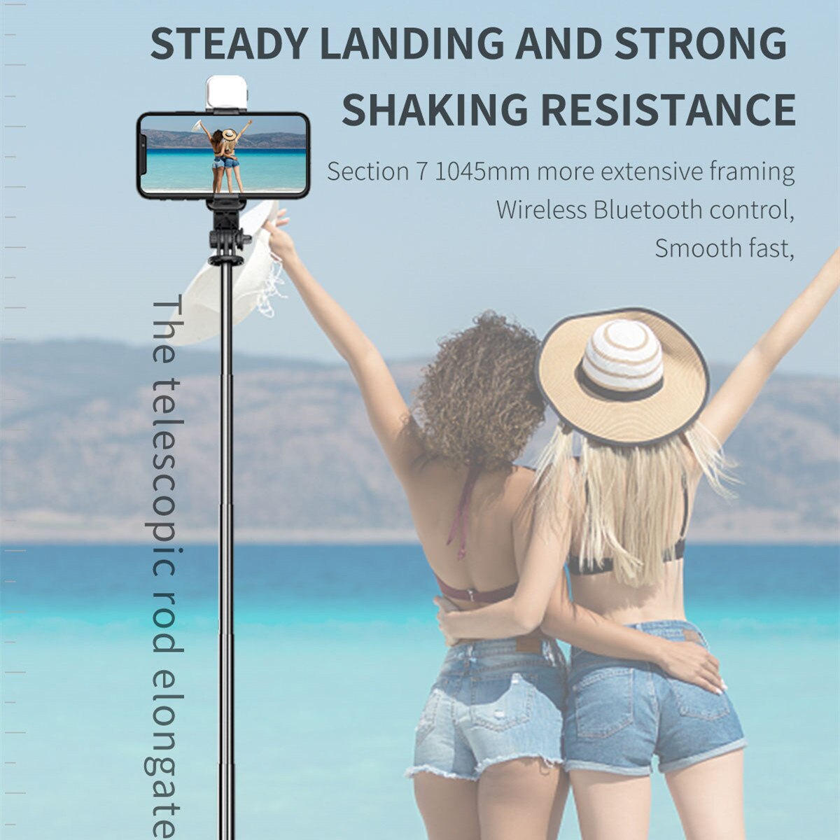Hand Held Selfie Stick Stabilizer & Detachable Fill-in LightThe Selfie Stick Stabilizer can easily shoot stable videos with stable balance, which can reduce the shaking of your body friends or family members during the shooting process. Besides, the selfie tripod also has a fill-in light function. You can beautify your skin color and make yourself more beautiful.