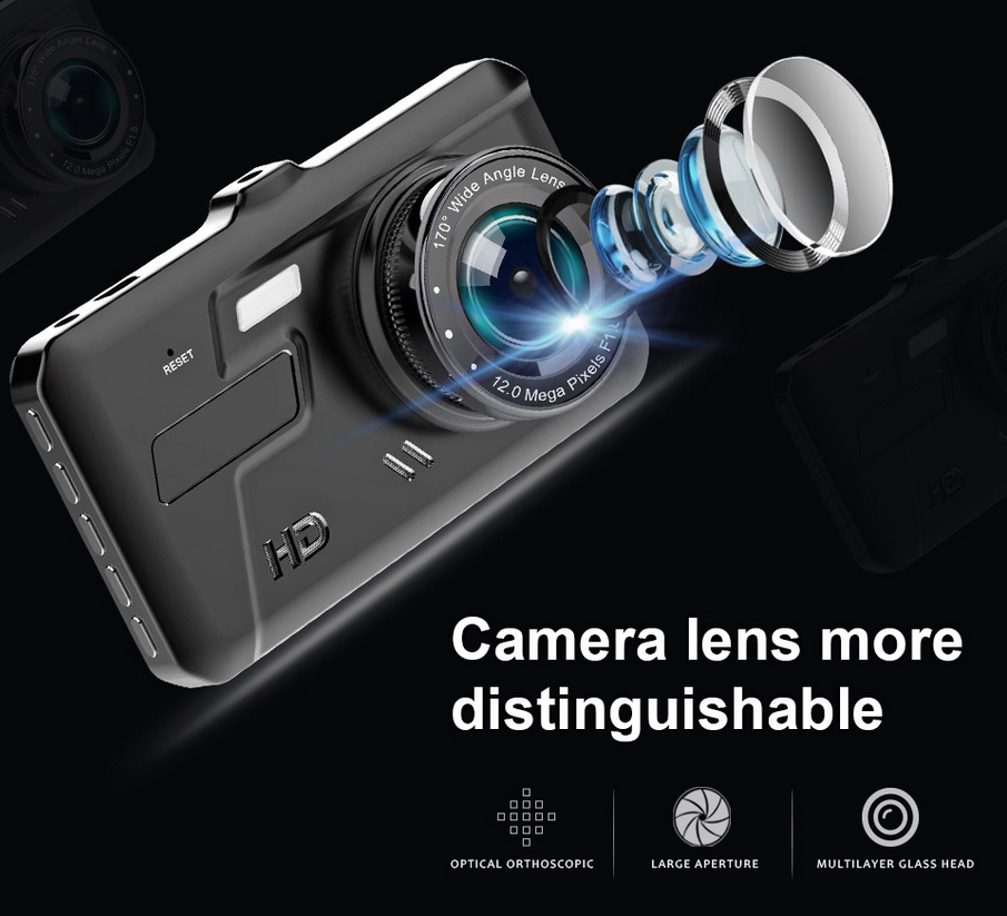 This Car DVR features HDR video, loop recording, no leakage of seconds, 170 Degree super wide angle lens video recorder, 4" IPS 1080P HD display, motion detection, G-sensor, night vision, parking monitor, support TF card, etc. Perfect for your safety driving!