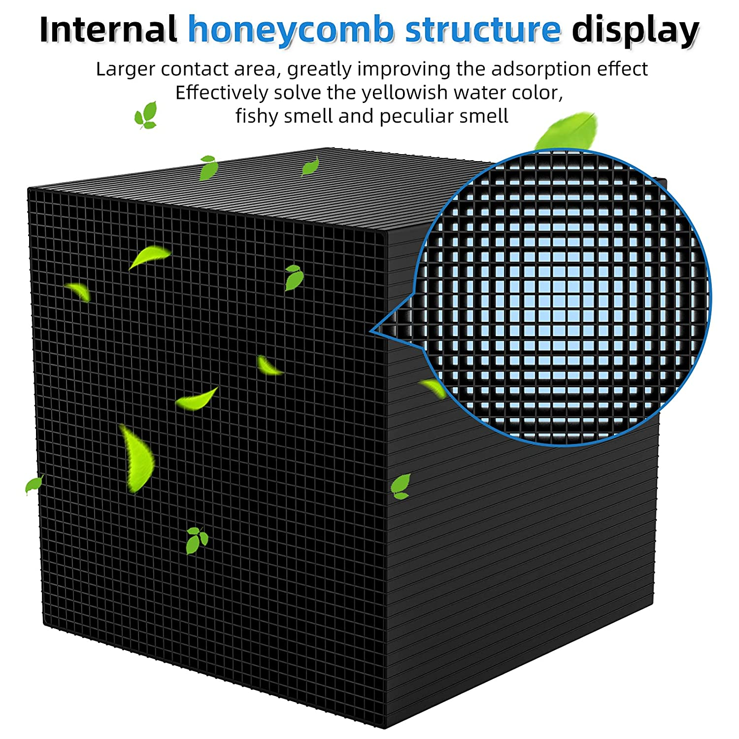 - The aquarium filter water cube is made of activated carbon, dense grid hole structure.