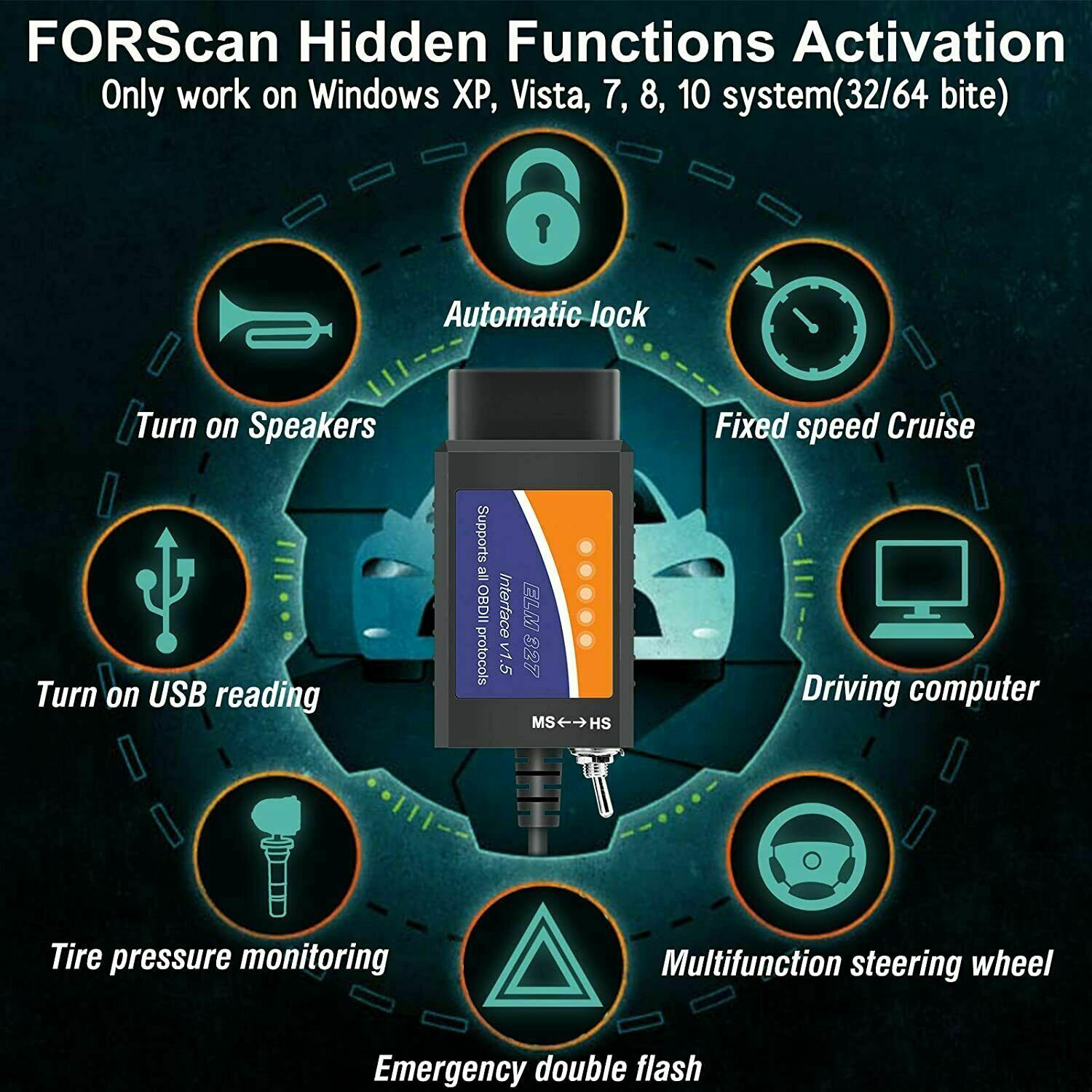 Ford FORScan ELM327 V1.5 USB Modified OBD Code Scanner HS MS-CAN ELMConfig