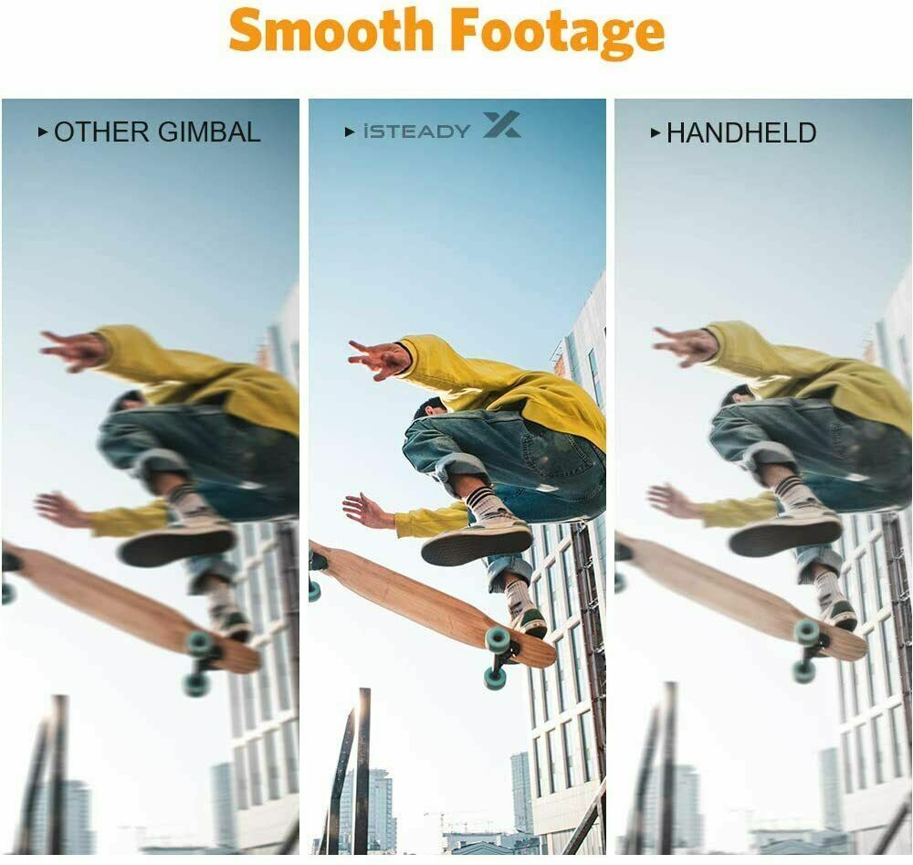 - Specific Innovative Design: The iSteady X features a selfie stick mode to lock the motors with more possibilities to continue shooting and use the gimbal even it is power off; The low-angle shooting design allow you to hold iSteady X upside-down and the smartphone will auto rotate to a low angle shooting viewpoint along with your movement, to avoid any multual interference between motors.
