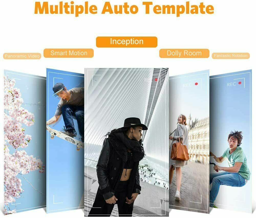 - The Most Convenient: Moment mode to auto add transitions, music, filter, and other effects to create cinematic videos with professional skills by reference to multiple templates; One-click quick roll switch, one-click motionlapse, one-click 600° inception mode, and one-click dolly zoom make your shooting more easier.