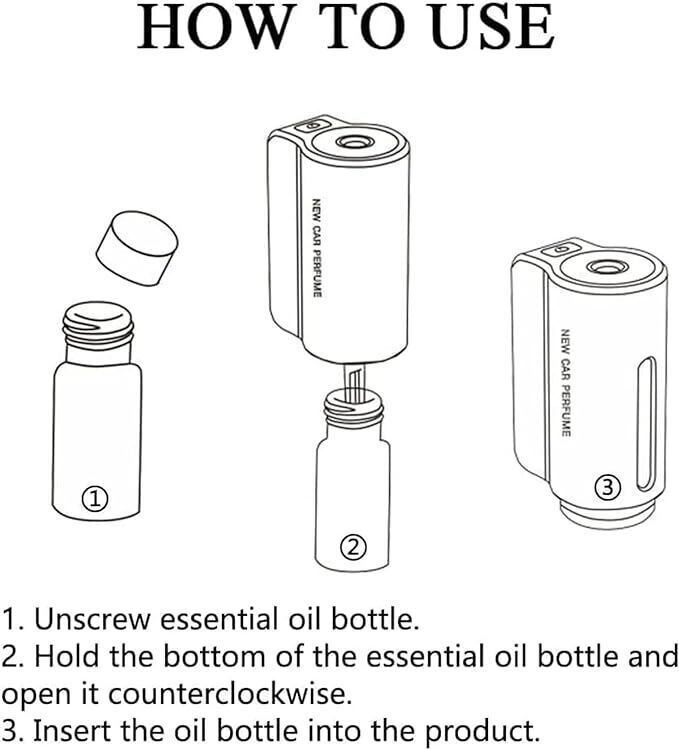 - Insert the essential oil bottle from the bottom and tighten it clockwise.