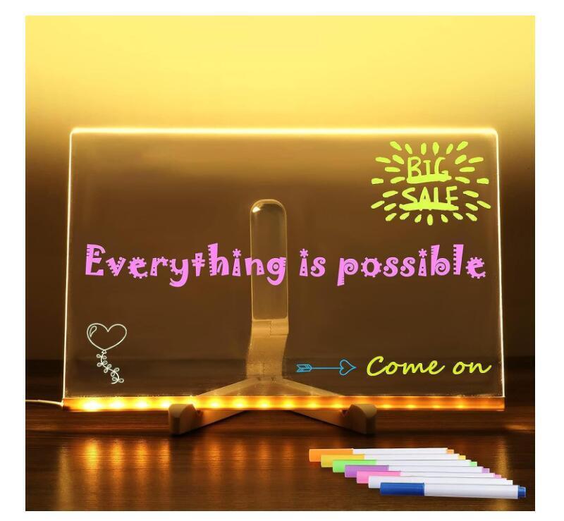 LED Note Board with Colors, Acrylic Dry Erase Board with 7 Pens for Office Home