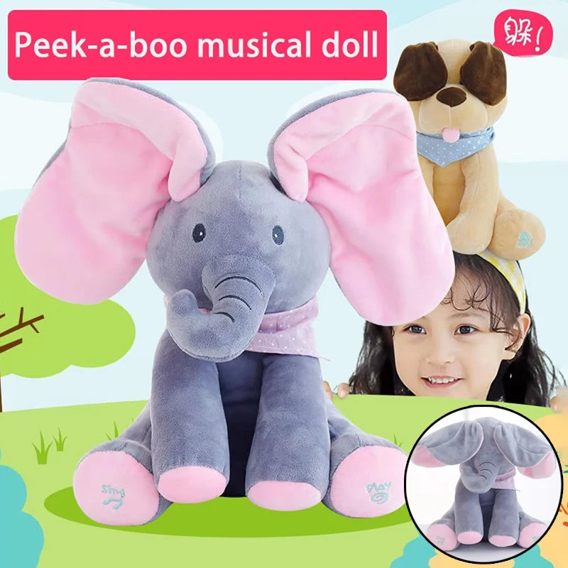 Introduce your child to a world of interactive fun and sensory development with the Peek-A-Boo Elephant Singing Musical Baby Plush Toy. This charming 30cm stuffed elephant is designed to engage and entertain, making it an ideal gift for newborns and toddlers.