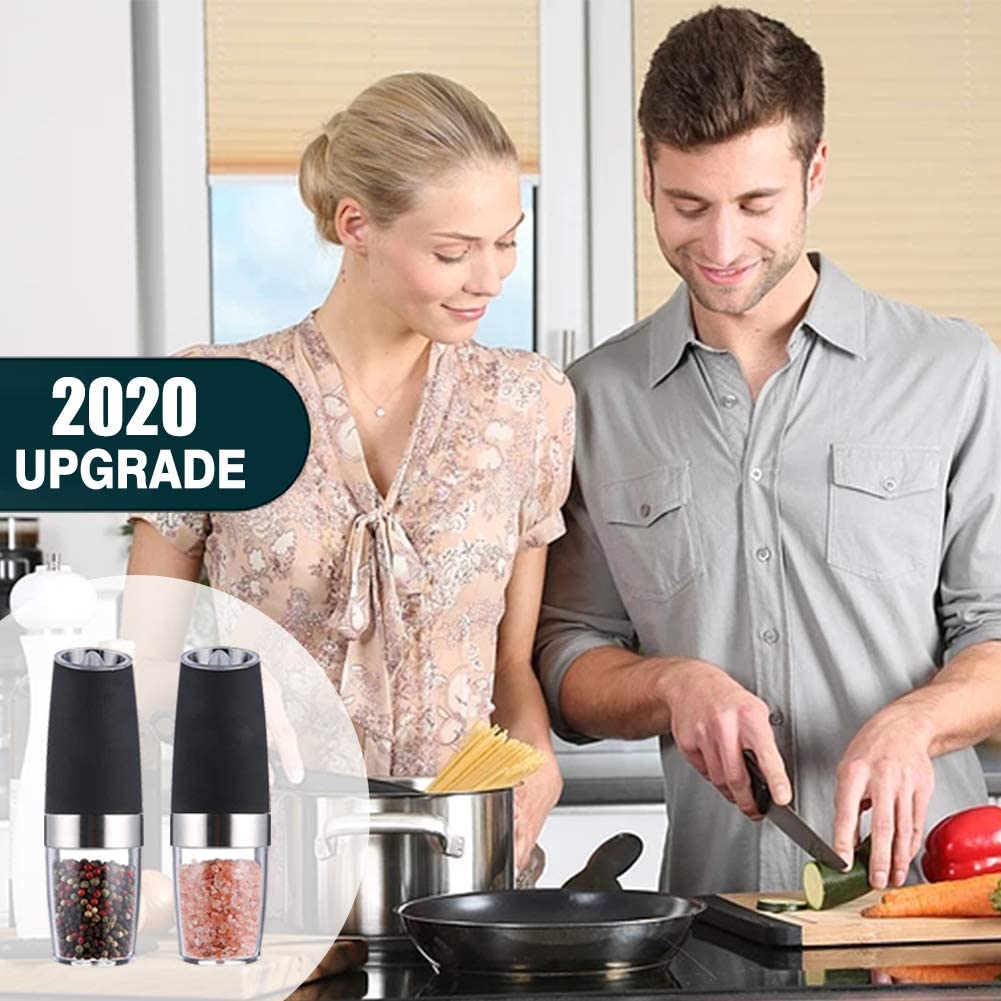 - One Handed Operation:The electric pepper grinder adopts advanced gravity sensing design, that you don’t need to use switch. Just simply turn upside down and get fresh spices. The blue LED light will turn on automatically when the grinder is in operation. you will easily be able to see amount of salt and pepper you put in your food.
