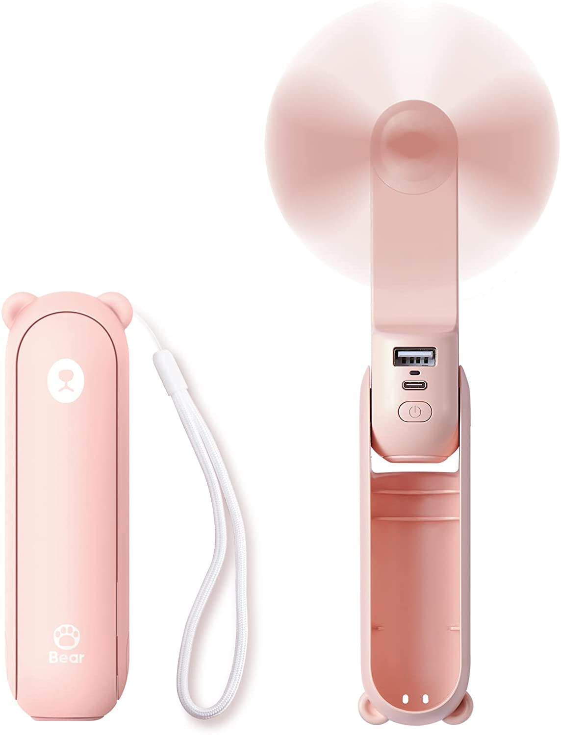 - 【Small In Size, Big On Function】 Combined with Fan + Flashlight + Backup Power Bank function,this pocket bear fan would be an everyday-carry-essential fan to cool you off in hot day and is multifunctional to satisfy your diverse needs.