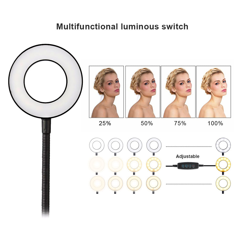 Bracket Cell Phone Holder with Selfie Ring Light for Live Stream, Flexible Mobile Phone Clip Holder Lazy Bracket Desk Lamp LED Light for Mobile iphone 7,6/plus,for Samsung,HTC,HUAWEI at Bedroom, Office, Kitchen, Bathroom