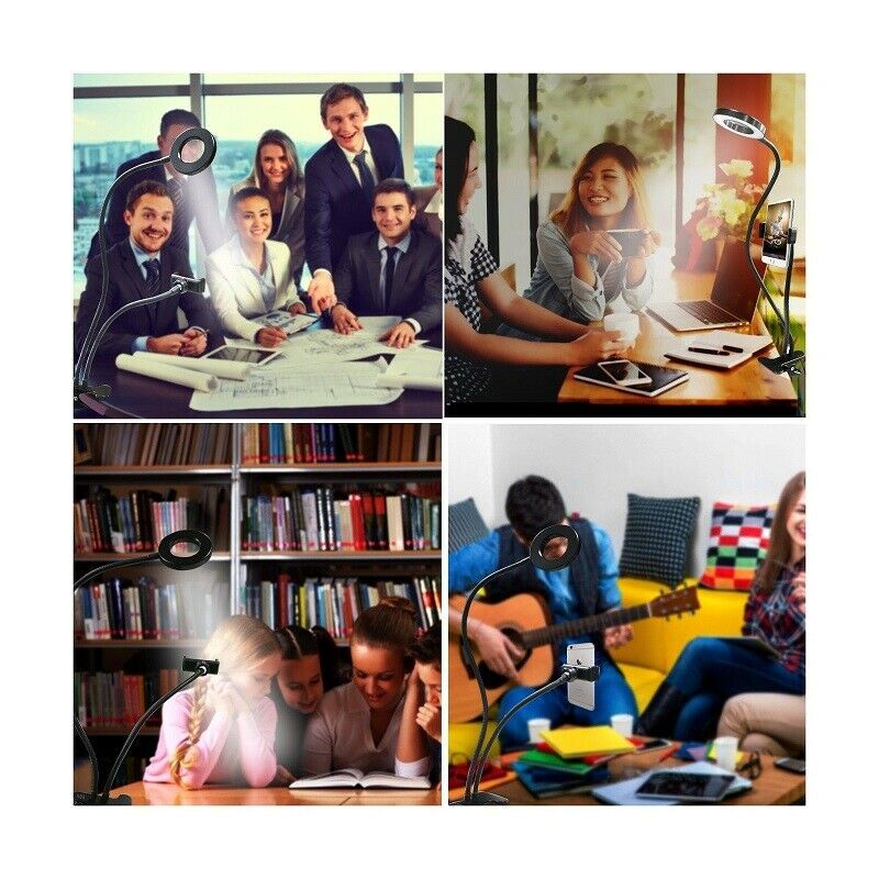 - FLEXIBLE: 24 inch strong long arm that can bend to any shape, 360 degree rotating lazy bracket clip. Adjust to any angle (face downwards, portrait and landscape) to free your hands for live stream, live broadcast, live show, selfie or video chat, or works as music light stand, desk lamp.