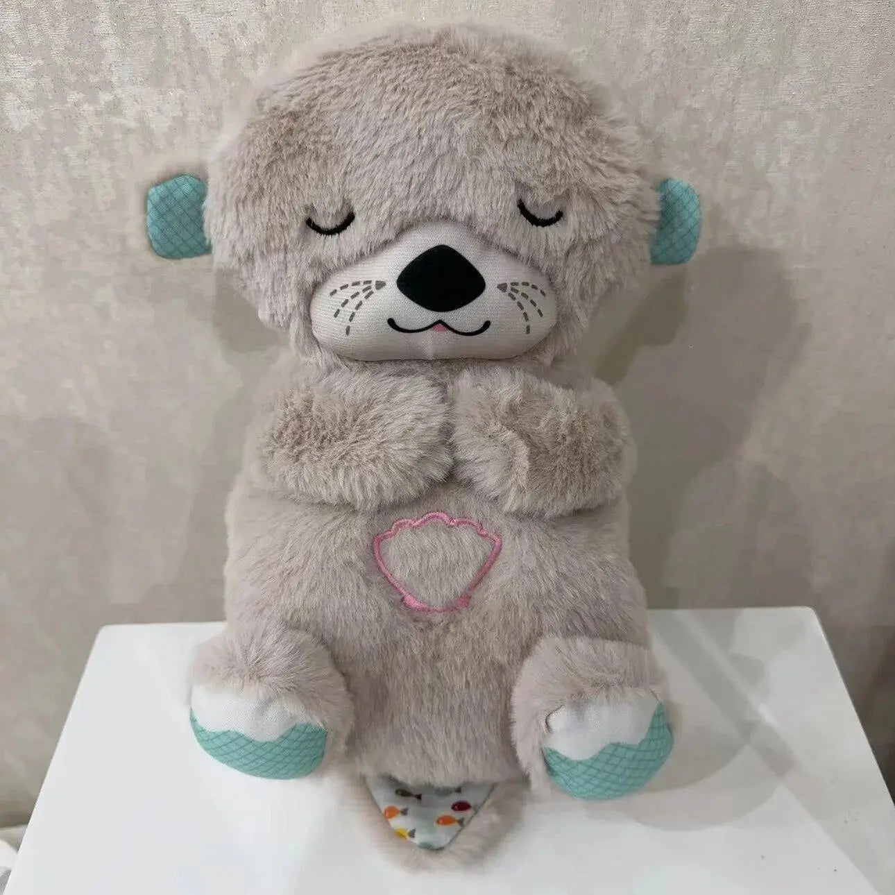 The breathing otter was sent in a plastic wrap, no box, no manufacturer's information, no tags etc. There was also damage to the fabric which makes me believe it's a second hand item! The push button is on the leg unlike what is shown in the photo. It seems it's a copy of a model currently on the market (lower quality). I've asked for a refund and they haven't got back to me yet!